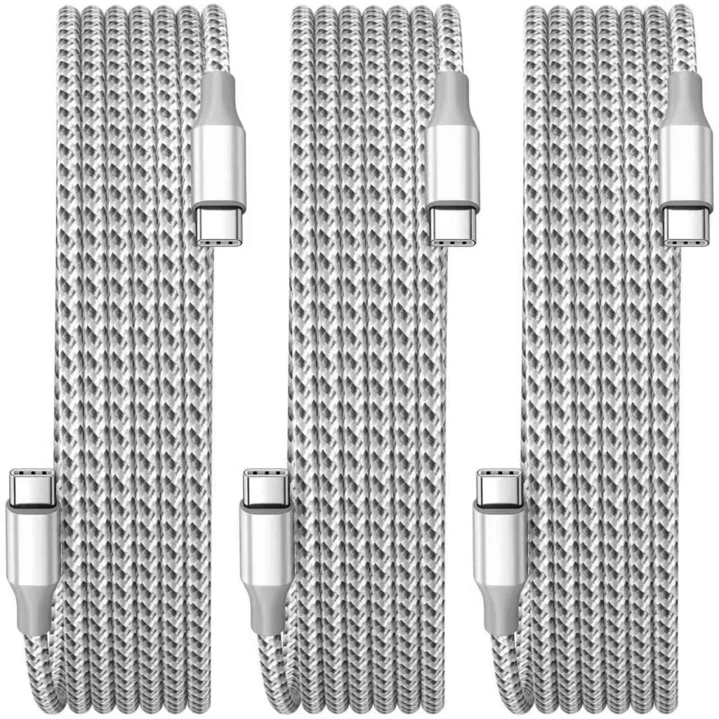 Get three 10ft braided USB-C cables with 60W fast charging. Your desk, nightstand, and bag will thank you.
